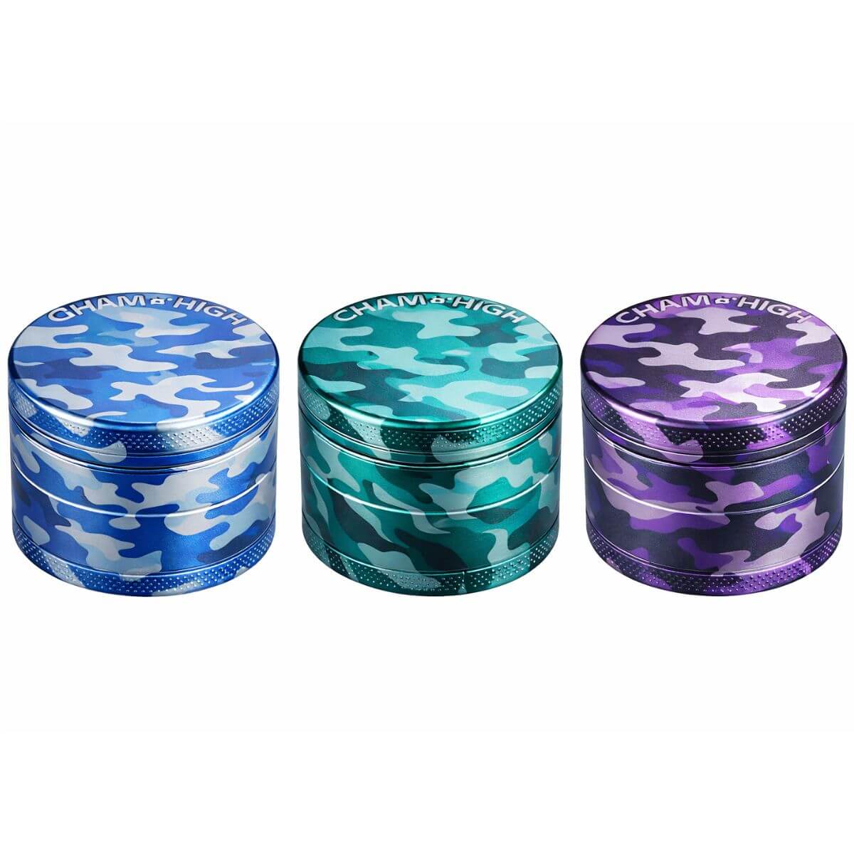 The Champ High Camo Grinder 50mm 4 Parts (9pcs/display) is a durable metal grinder featuring a rugged camouflage finish and a practical 4-part configuration. With integrated grinding chamber, screen, and collection compartment, this 50mm grinder balances portability, performance, and visual appeal. Ideal for adult-use accessory retail, it combines functional utility with lifestyle-driven aesthetics to attract impulse and repeat purchases.