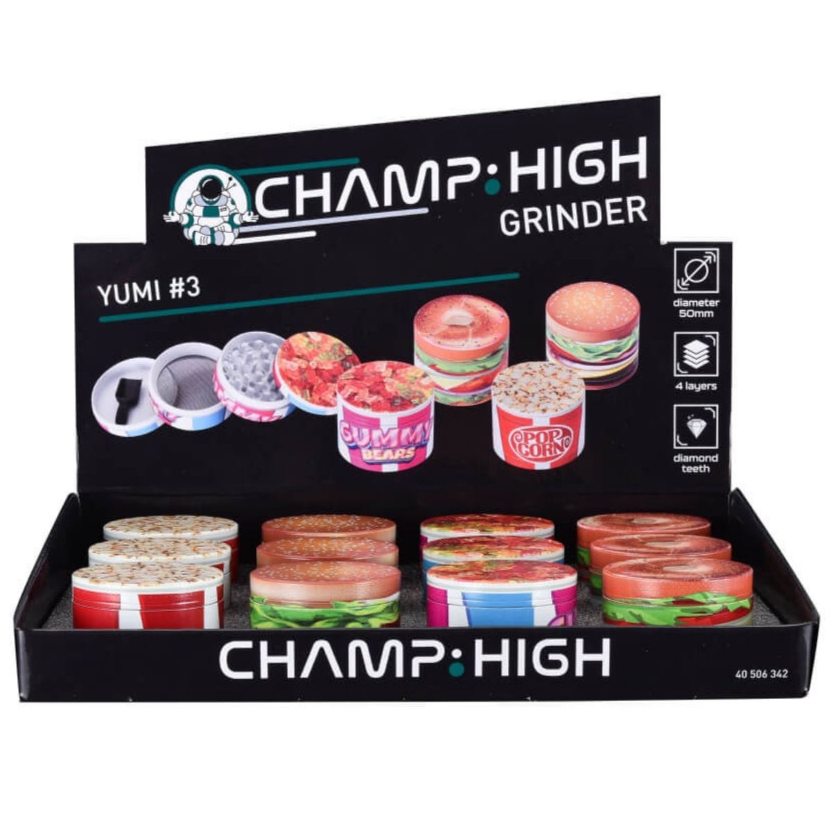 The Champ High Yumi Grinder 3 is a compact grinding accessory designed for adult use smoking accessory markets. Developed with a balance of functionality and visual appeal, this grinder supports efficient material preparation while maintaining a lightweight and portable form factor suitable for everyday use. The Yumi Grinder 3 design delivers a recognizable aesthetic that aligns with modern lifestyle accessory assortments.