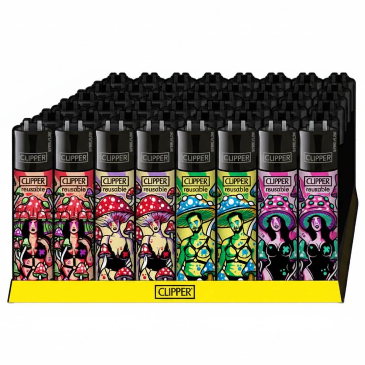 The Clipper Lighters Classic Kinky Shrooms (48pcs/display) collection features playful, psychedelic mushroom-themed designs that stand out on any retail shelf. Each lighter combines Clipper’s reliable, refillable engineering with bold, pop-art inspired graphics, offering both functionality and collectible appeal. The 48-piece display is perfect for smoke shops, gift stores, and lifestyle retailers seeking visually engaging, high-turnover items.