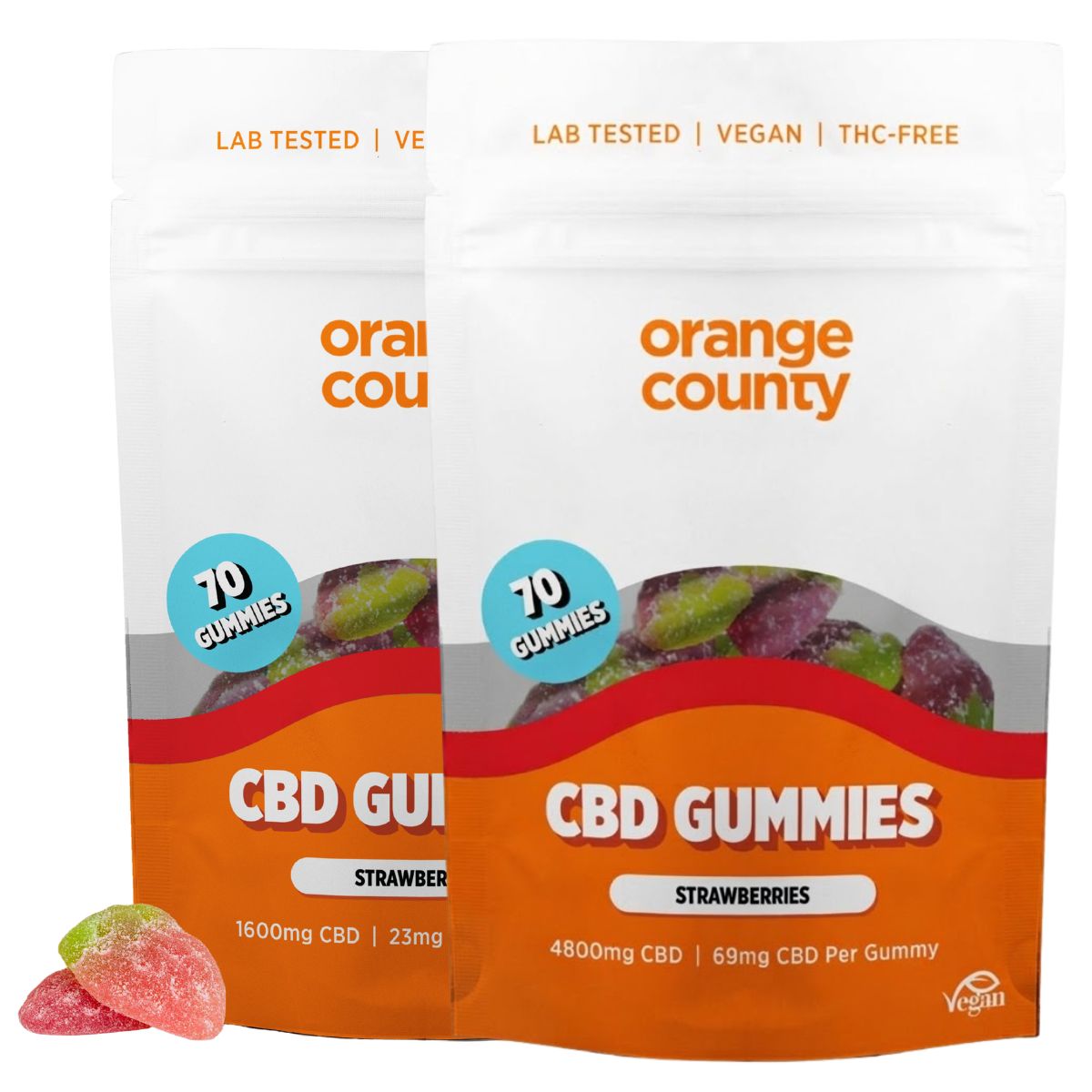 • 1 x Orange County CBD Gummies Strawberry Flavour Large Bag